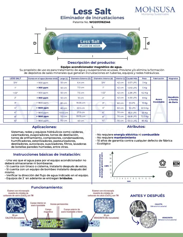 Acondicionador de sales que previene y elimina sarro en sistemas hidráulicos y de transferencia de calor a través de campos magnéticos.
