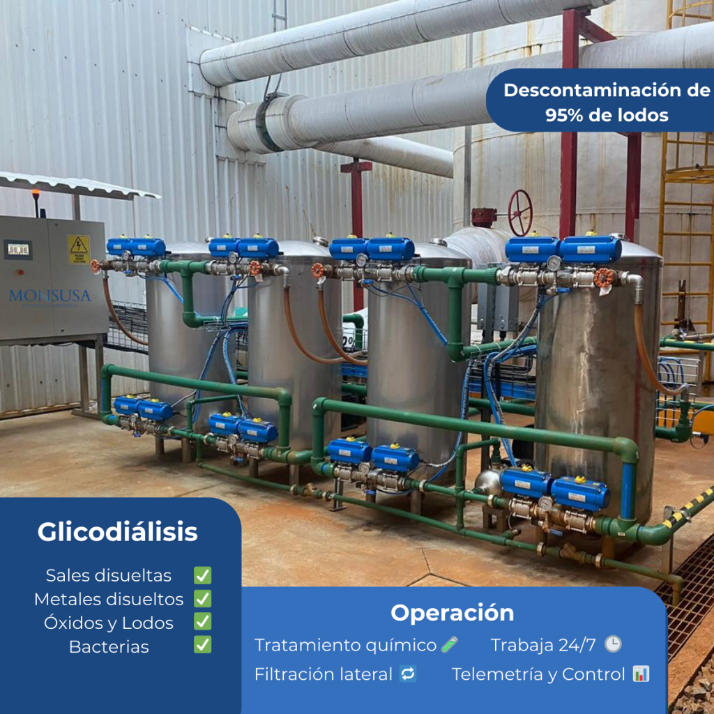La glicodiálisis es un proceso de limpieza y depuración continua del glicol que elimina sólidos, lodos, corrosión y contaminantes sin necesidad de drenar ni detener el sistema. Su objetivo es recuperar y mantener la calidad del glicol durante la operación.